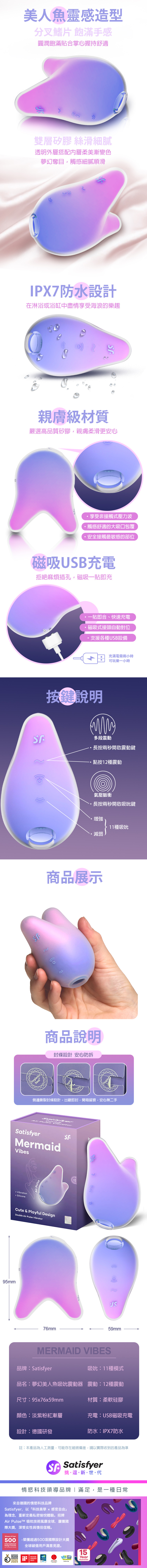 品名:Satisfyer|Mermaid Vibes|夢幻美人魚 吸吮陰蒂震動器 漸層粉紫